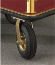 This cart is 25” wide, 71” tall and available in two lengths, 48.5” and 40.5”. Solid Rubber Wheels, Removable Shelf and Side Containment Rails are Standard. 1” dia. Rails. Upgrade to Pneumatic Wheels may be added at an additional charge.