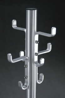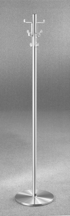 The Glaro Satin Aluminum Coat Tree is the most stable available. Able to hold a leather jacket on one side and a lightweight raincoat on the other. Perfect for areas where you are not able to install a wall-mounted coat rack.